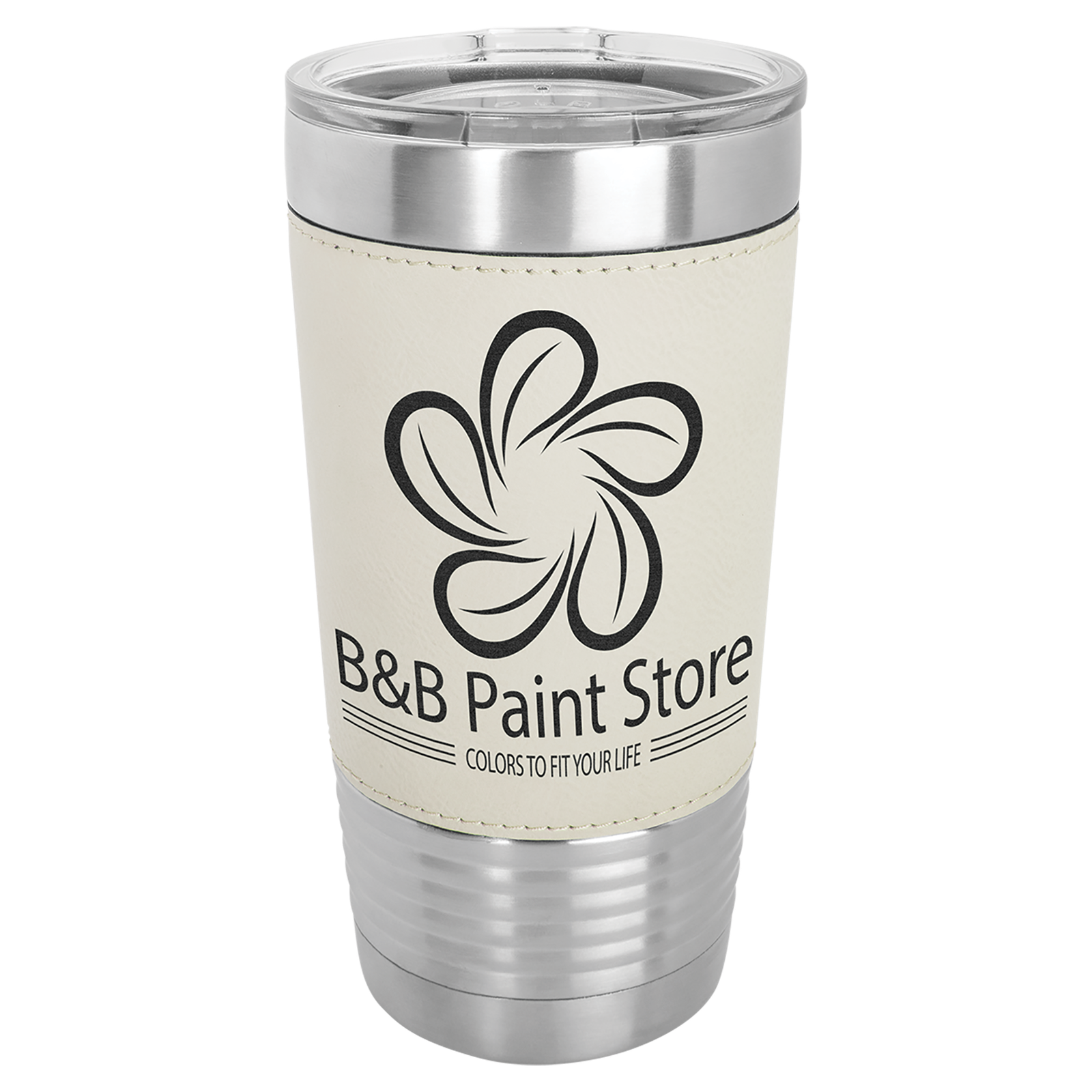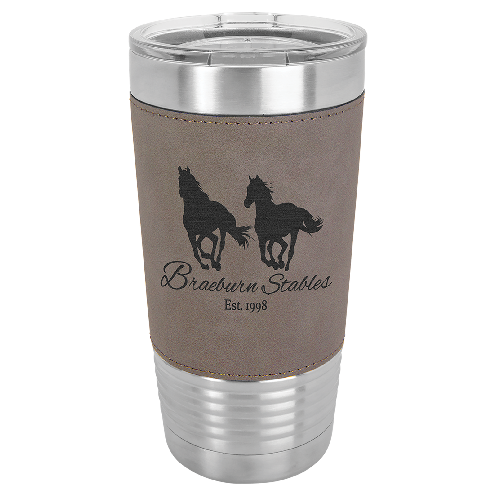 The leatherette grip provides a comfortable feel and stylish look while making the tumbler easy to hold. Our laser engraved leatherette tumblers create a permanent design that will not fade or peel, giving your custom engraving a professional finish that lasts the life of the tumbler.